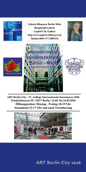 27. ART Berlin City 16.05. - 24.05. 2026 Vernissage 16.5. 2026 - 15:00 Uhr Atrium Internationales Handelszentrum Friedrichstraße 95 - 10117 Berlin